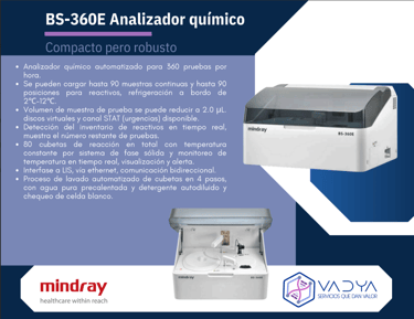 El BS-360E es un analizador automático de química clínica, diseñado especialmente para laboratorios que buscan alta precisión en espacios reducidos. Su estructura compacta, combinada con un rendimiento confiable, lo convierte en la solución perfecta para centros de diagnóstico de bajo a mediano volumen.